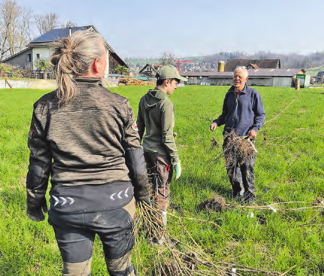 Vergangenes Wochenende haben sechs Mitglieder der Young Ranger zusammen mit ihrer Leiterin Daniela Schumacher und Mitgliedern des Landschaftsschutzverbandes Hallwilersee (LSVH) am Dorfrand von Aesch über 130 Wildsträucher gepflanzt. Das Land dafür wurde dem LSVH von Urs Sommerhalder und Marianne Lütolf für eine ökologische Aufwertung zur Verfügung gestellt. Auch Kleinsäuger, Amphibien und Reptilien kamen nicht zu kurz. Für sie wurden vor der Pflanzaktion bereits Sand- und Steinhaufen, Scheiterbeigen und Totholzstämme auf dem Gelände platziert. Bald wird ein Biolandwirt das Grasland zu einer Blumenwiese umwandeln, worüber sich dann Insekten freuen.