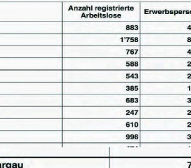 Bei den sieben Aargauer Regionalen Arbeitsvermittlungszentren waren per Ende Juli 80 Personen weniger als arbeitslos gemeldet im Vergleich zum Vormonat. Im Kanton stagniert die Arbeitslosenquote bei 2,1 Prozent, im Bezirk Kulm bei 2,6 Prozent.