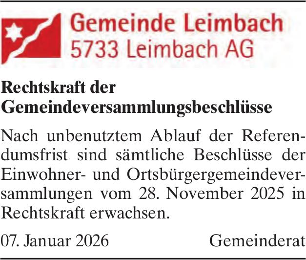 Sonstiges, Leimbach - Gemeinde Leimbach, Rechtskraft der Gemeindeversammlungsbeschlüsse