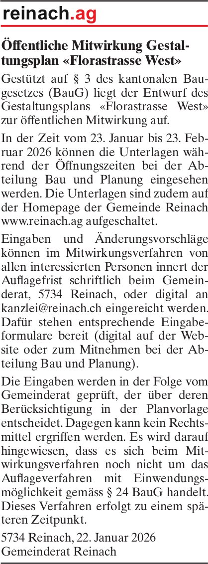 Hauptstrasse 75a, 5737 Menziken Informationen veröffentlichen
