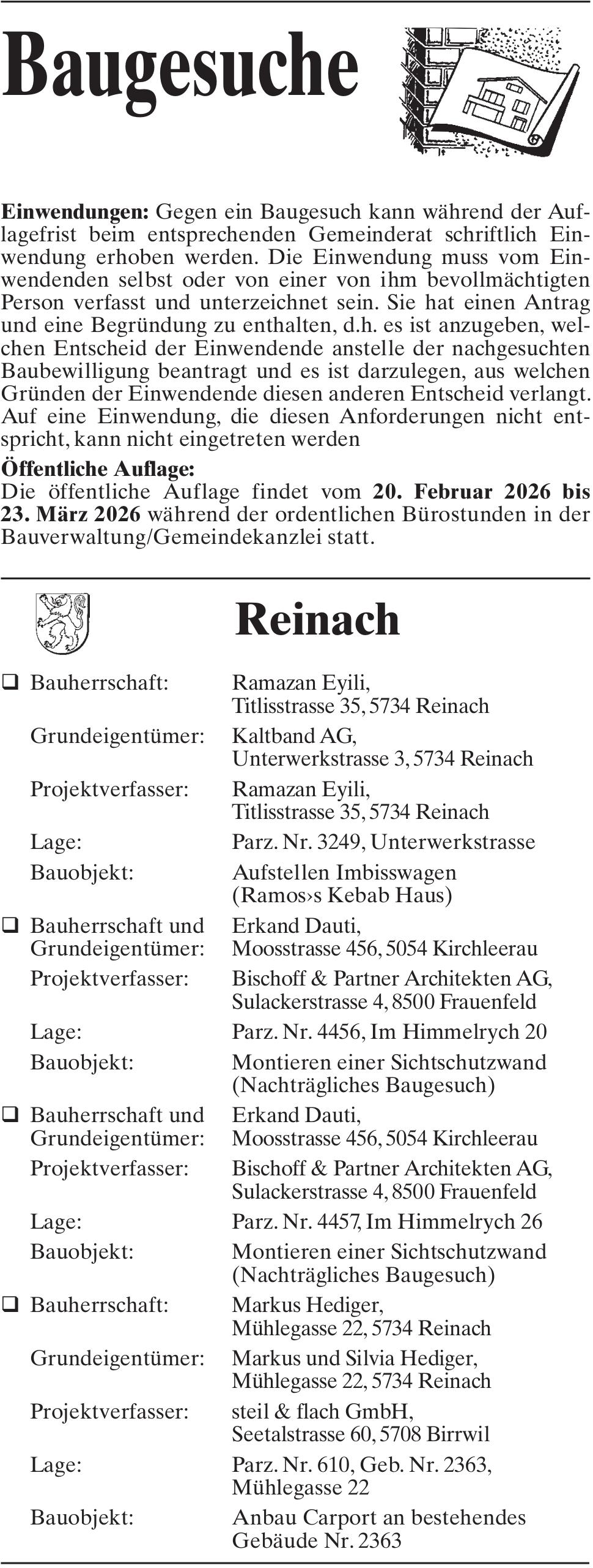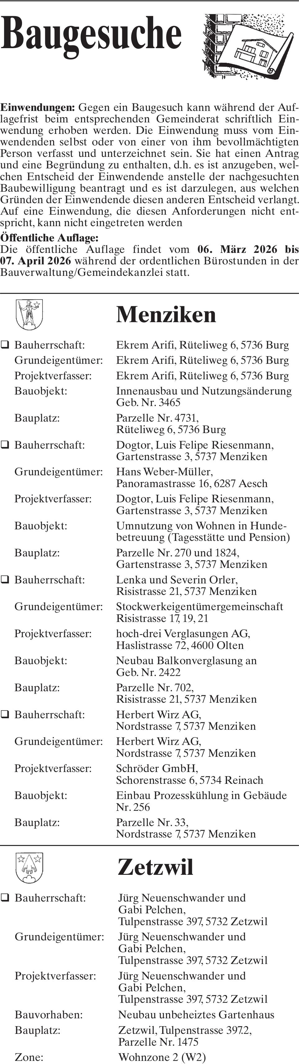 Baugesuche, Menziken/ Beinwil am See /Leimbach