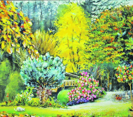 ro. Angeregt wurde das Gartenbild durch den Judasblattbaum, der im Früherbst leuchtend zitronengelb als erster Baum im Garten mit seinem besonderen Farbfeuerwerk anzeigt, dass der Sommer zu Ende geht. Nebst seinem Leuchten geben seine gelbfarbigen Blätter einen feinen Duft nach Lebkuchen-Vanille…