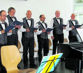 Von der grossen Bühne des Löwensaals sind die 13 Sänger ins Foyer gezogen und haben mit ihrem Ständchen viele Gäste, Freunde und Bekannte erfreut.