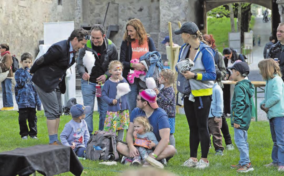 Weitere Aktivitäten laden zum Mitmachen und Zuhören ein: Kräutersalz darf selbst gemischt werden, es gibt eine Märchenerzählerin sowie die Möglichkeit Wappen zu gestalten. Beliebt ist ein lustiger Hindernisparcours, bei dem die Teilnehmenden ein Kunststoff-Ei auf einem Löffel balancieren müssen. Die besondere Herausforderung: Ein beweglicher Stoffschlauch. Mit viel Spass und Lachen bewältigen die Kleinen den Parcours, während ein danebenstehender Vater überlegt, kurzerhand mitzumachen. «Der Schlauch könnte allerdings ein Problem werden», stellt er lachend fest.