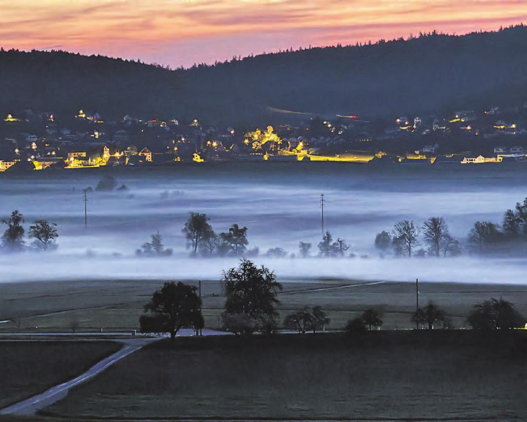 23.04.2026 Region, HallwilZwar herrschen am Tag bereits warme Frühlingstemperaturen vor. In klaren Nächten wird es jedoch immer noch empfindlich kalt, sodass am frühen Morgen vor Sonnenaufgang der Boden stark ausgekühlt ist und darüber eine dünne Nebelschicht entsteht, die die Landschaft ...
