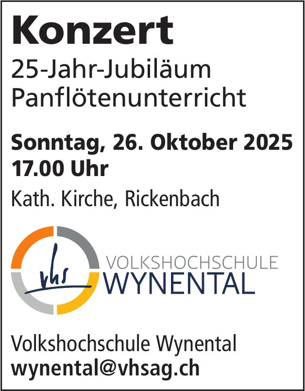 25-Jahr-Jubiläum Panflötenunterricht, 26. Oktober, Kath. Kirche, Rickenbach