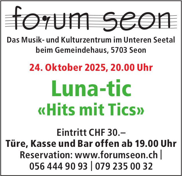 Luna-tic «Hits mit Tics», 24. Oktober, forum seon