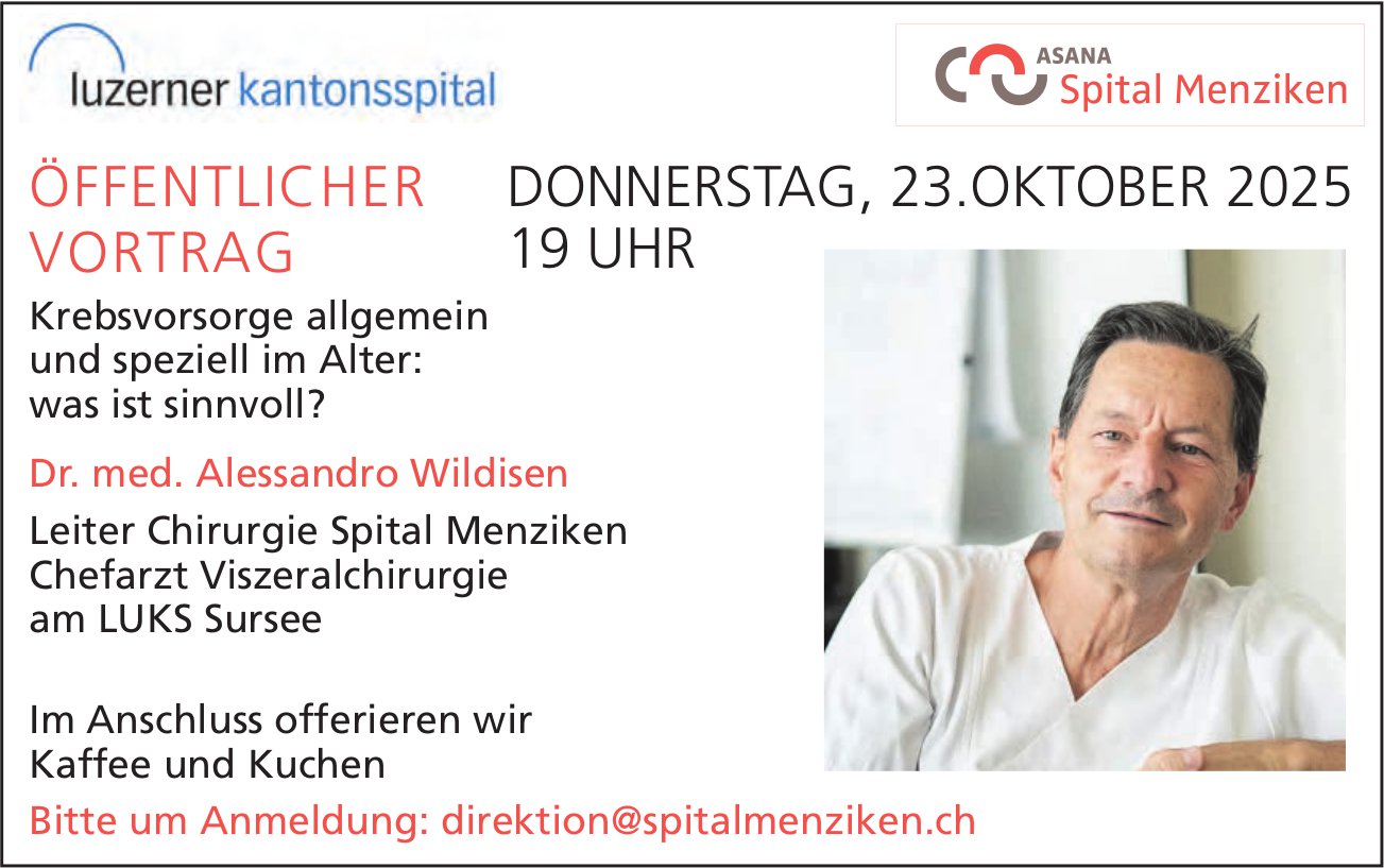 Öffentlicher Vortrag: Krebsvorsorge allgemein und speziell im Alter: was ist sinnvoll?, 23. Oktober