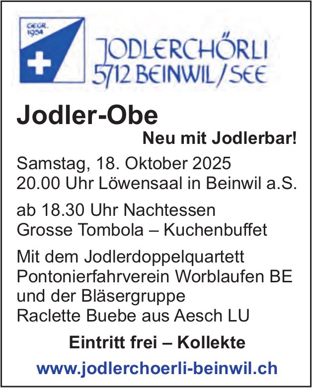 Jodler-Obe. Neu mit Jodlerbar!, 18. Oktober, Aesch