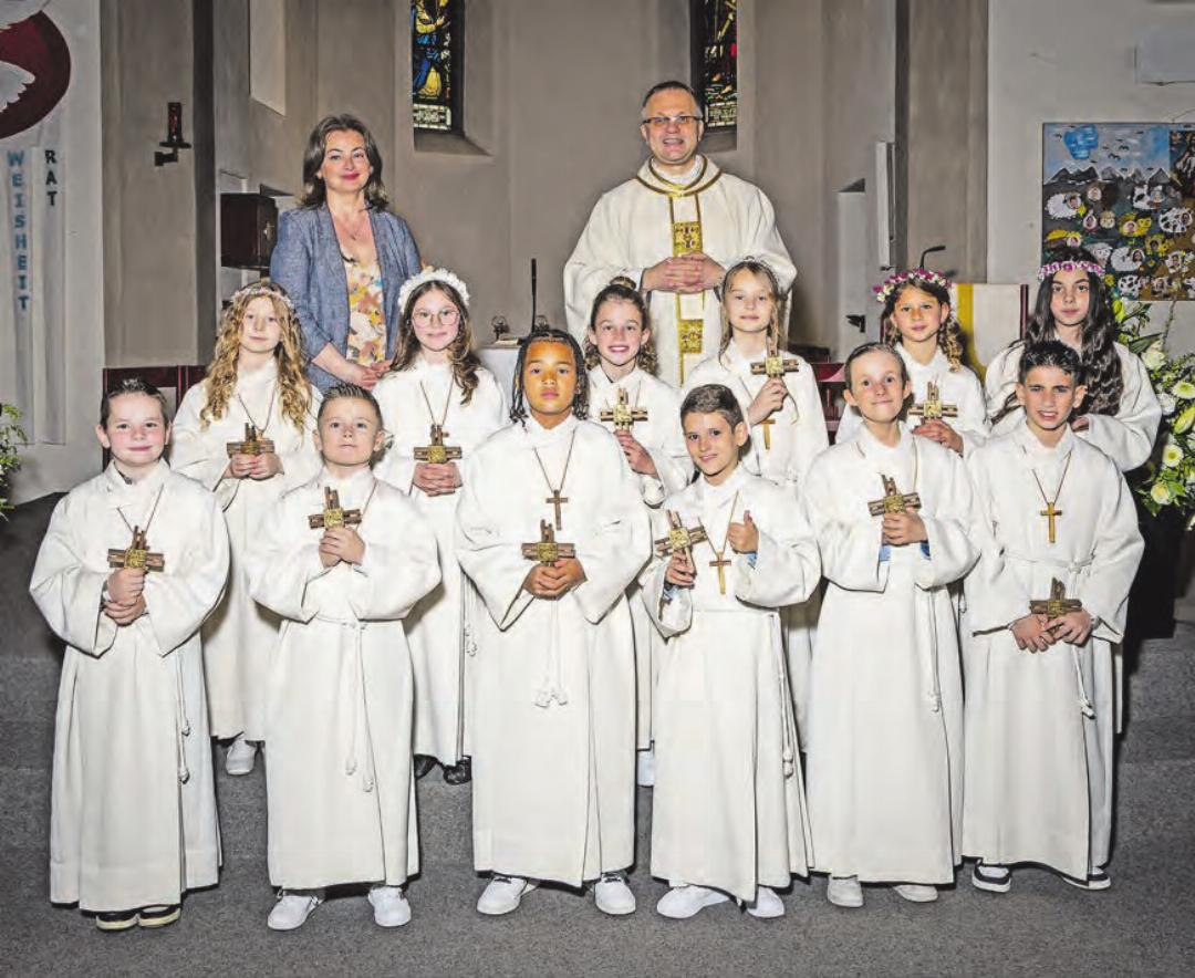 (Eing.) Am Weissen Sonntag, dem 12. April, feierten zwölf Kinder in der Kirche St. Anna in Menziken ihre Erstkommunion. Am Sonntag, dem 19. April, fanden weitere Erstkommunionfeiern statt: um 10 Uhr in der Kirche Bruder Klaus in Unterkulm und um 10.30 Uhr erneut in der Kirche St. Anna in Menziken. Insgesamt nahmen dabei 25 Kinder teil. Unter dem Thema «Jesus, mein guter Hirt» wurden die Mädchen und Buben von den Katechetinnen Gjyle Buzhala, Sugey Lutz und Rahel Müller auf diesen besonderen Tag bestens vorbereitet. Ein herzlicher Dank gilt allen Eltern, die ihre Kinder im Unterricht begleitet haben, sowie allen Helferinnen und Helfern, die zur gelungenen Vorbereitung und Durchführung der Feiern beigetragen haben.