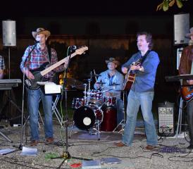 Daniel Knechtli, Tschändu Muhmenthaler, Fabian Gaberthüel, Chris Regez und Gogo Frei sorgten am lauen Freitagabend im Schöftler Schlosspark für echtes Western-Feeling. Die Crew vom Schlossgarten "spielte" mit. Mehr im Wynentaler Blatt Nr. 68 vom 9. September 2014.