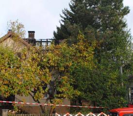 In Schöftland, an der Dorfstrasse, neben der Flora-Garage, brach am Mittwochnachmittag ein Brand aus. Der hintere Teil des Hauses war stark in Mitliedenschaft gezogen, von vorn war nur der ausgebrannte Dachstock zu sehen. Siehe Nr. 89