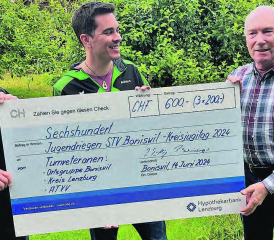 (Eing.) Kürzlich waren die Boniswiler Turnveteranen zu einem Grillabend bei Scheideggers unter dem Nussbaum eingeladen. Dabei konnten der Boniswiler Ortsgruppenleiter Paul Scheidegger und der Kreispräsident Beat Bättig dem Jugendverantwortlichen der Boniswiler Jugendriegen, Adrian Schanz, einen…