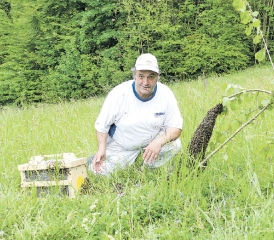 Die Freude über sein unglaubliches Glück war dem erfahrenen Imker und Schwarmfänger der Gemeinden Teufenthal und Oberkulm spürbar anzumerken. Felix Vogler ist es gelungen, zwei Schwärme aus seinem eigenen Bienenhaus wieder einzufangen, bevor sie sich wild niederliessen.