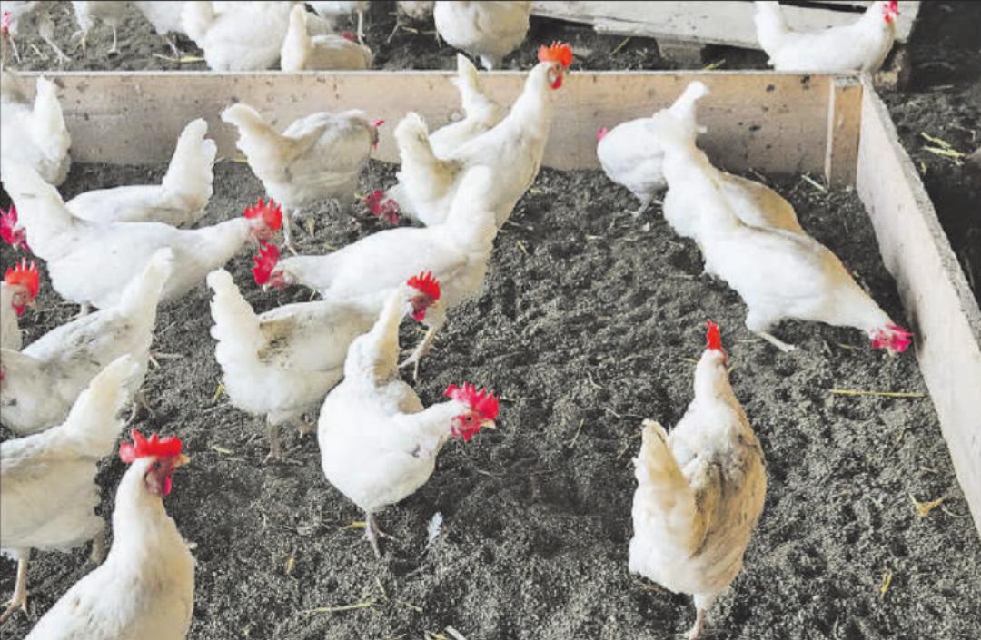 «Mit der Legehennenhaltung habe ich immer schon etwas geliebäugelt», berichtet Reto Walti. Ende 2021 ergab sich die Gelegenheit, einen konventionellen Betrieb in Oberkulm zu übernehmen. Öfters hatte er dort schon ausgeholfen. Einen landwirtschaftlichen Betrieb zu führen und davon zu leben, war der Traum der Bauernfamilie. Direkt nach der Betriebsübernahme startete die zweijährige Bio-Umstellungsphase. Der bestehende Legehennenstall wurde nach Bio-Suisse-Vorgaben umgebaut. Somit konnten im Herbst 2022 erstmals 2000 Bio-Legehennen der Rasse Lohmann Sandy im Alter von 17 Wochen eingestallt werden. Eine Geflügelrasse, die äusserst robust ist und das Futter ausgezeichnet verwertet. Die weissbefiederten Tiere legen cremefarbige Eier mit einer guten Schalenstabilität. Neben zum Teil gedeckten Aussenplätzen und einem grosszügigen Stall mit vielen Legenestern, Futterplätzen, Tränken, Sitzstangen auf verschiedenen Höhen und Sandbädern steht ihnen ein grosser Freilandbereich zur Verfügung. Insgesamt ist es eine Hektare Wiesland mit Weiden, Sträuchern, eingerichteten Schattenplätzen bis zu kleinen Haufen mit Kieselsteinen und Splitt. Denn Hühner haben keine Zähne und schlucken ihre Nahrung unzerkaut herunter. Diese landet zuerst im Kropf und dann im Muskelmagen. Die aufgepickten Steinchen wirken bei den kräftigen Muskelbewegungen des Magens wie ein Mahlwerk.